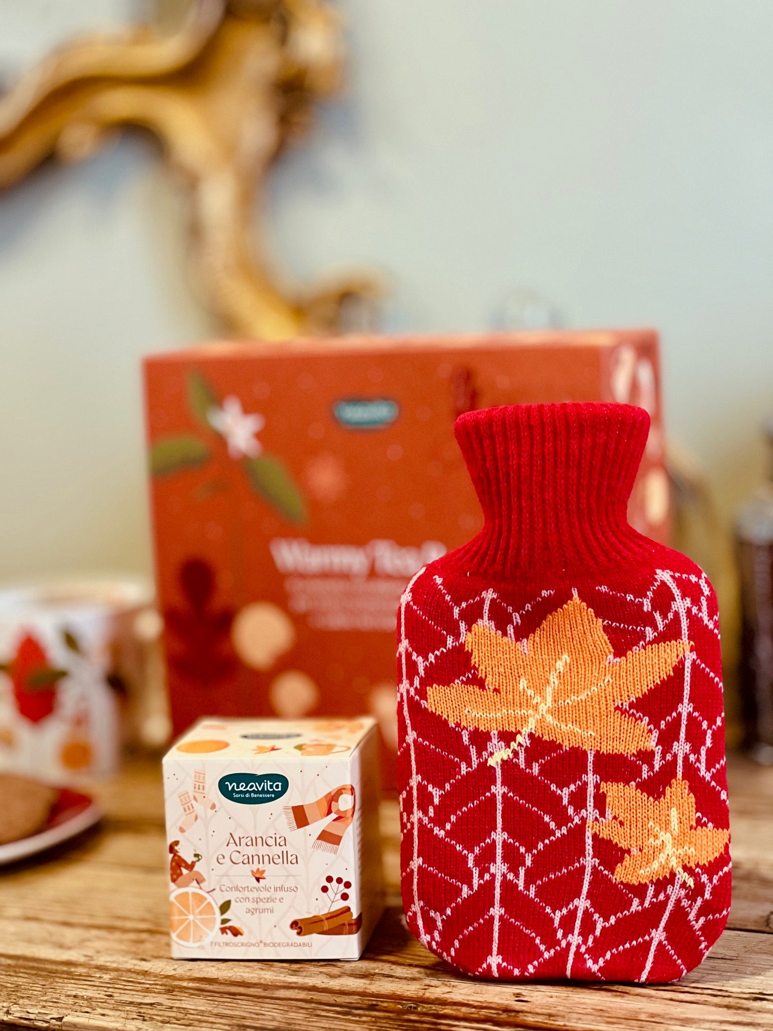 Cofre regalo Bolsa de Agua Caliente y latita de Infusión Canela y Naranja