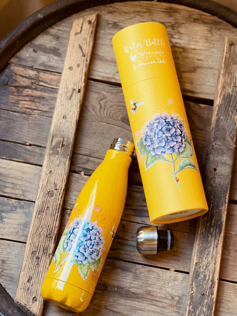 Disfruta de bebidas frías o calientes dondequiera que estés con esta atractiva botella de agua con diseño de abeja y hortensia. Cada botella incluye un tubo ilustrado reciclable, ideal para regalar. No apta para zumos de frutas, leche ni refrescos. Libre de BPA, lavar a mano únicamente, capacidad de 500 ml y fabricada en acero inoxidable. Medidas del tubo: 288 mm x 85 mm.